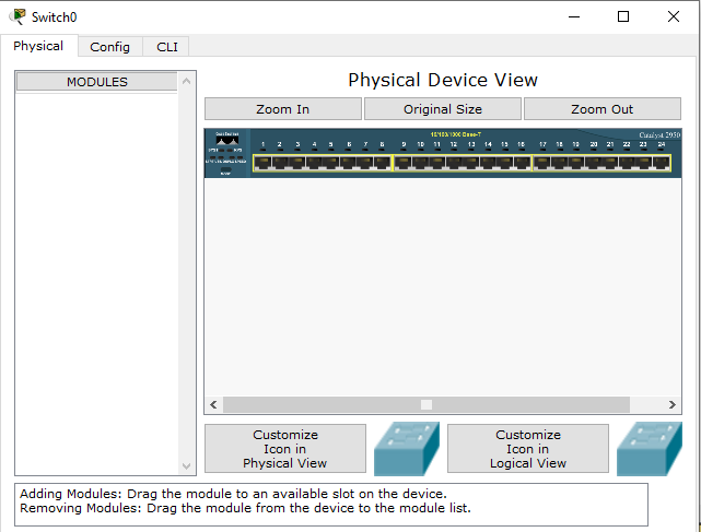 PC 0 terhubung dengan port FastEthernet 0/1 dengan IP 200.100.10.1/24